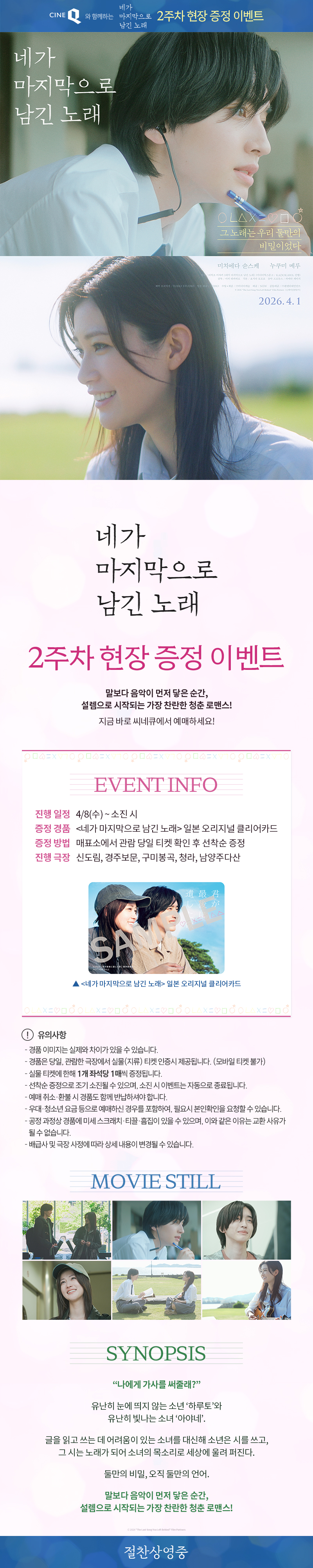 | <네가 마지막으로 남긴 노래> 개봉 2주차 현장 증정 이벤트 | |